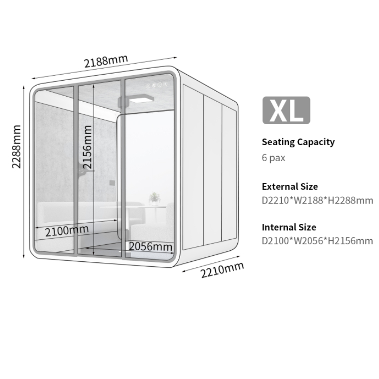 With its certified soundproofing, large capacity design, and detailed configuration that supports multilingual communication, this pod provides a professional space for cross-functional team collaboration, international client negotiations, and multi-language conferences. It effectively helps companies elevate office quality and enhance global collaboration efficiency.