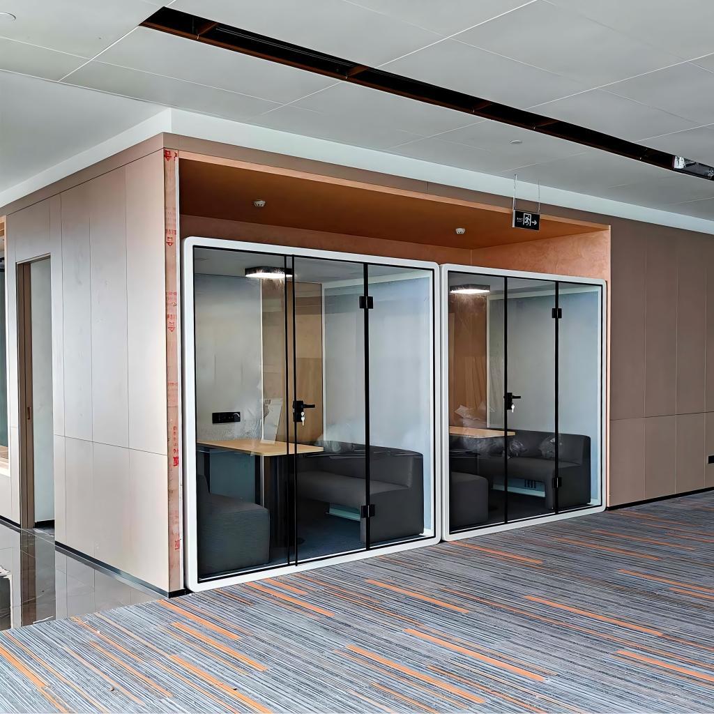 Furthermore, all corners and edges of the pod are finished with a rounded, polished process to prevent bumps or injuries caused by sharp edges—making it particularly suitable for high-traffic office environments. Anti-slip pads are installed beneath the seats to prevent them from sliding during use and causing accidents, providing all-around protection for employee safety.